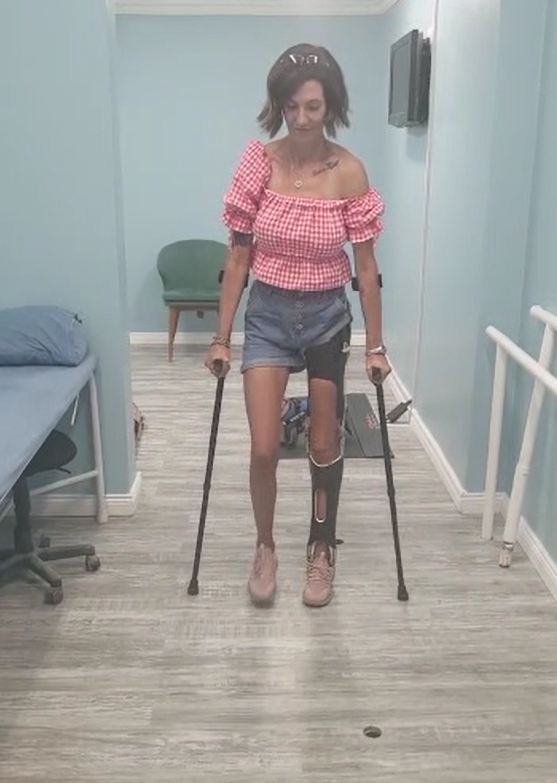 She diligently continued her physical rehabilitation program and forced herself to walk with much difficulty and determination using static stabilizing splints to relearn her ambulation pattern. She progressed on to a dynamic hip, knee, ankle, foot orthosis. Many said she should stop trying to walk…boy were they wrong!
